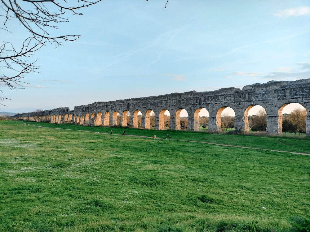 Similarly, the ancient engineers of Roman civilisation created a intricate 250 mile aqueduct system, which transported water using no mechanical assistance and just gravity.Taking advantage of the natural slope of the land (an environmental theme we came across earlier) and gravity, the Romans built their aqueducts with a slightly downward slope. The aqueducts were built with concrete, brick or stone and water could then easily flow into the cities for drinking,irrigation and the communal baths.