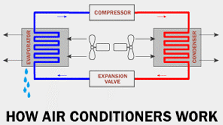 Air conditioning starts when hot air from the room flows over evaporator coils, which are filled with liquid refrigerant.As the refrigerant absorbs heat, it changes from a cool liquid to a warm gas.